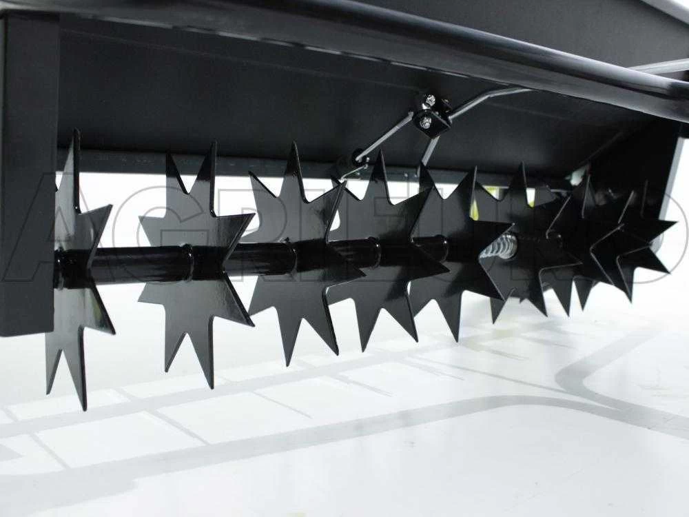 Le levier de réglage de l’ouverture s’effectue par degrés, permettant ainsi de rendre régulière la quantité d’engrais ou de semences à verser avec une extrême précision.