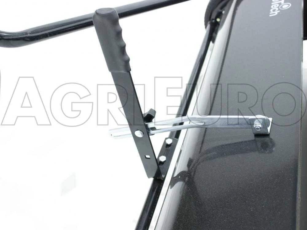 Détail du dispositif d’attelage à la tondeuse autoportée