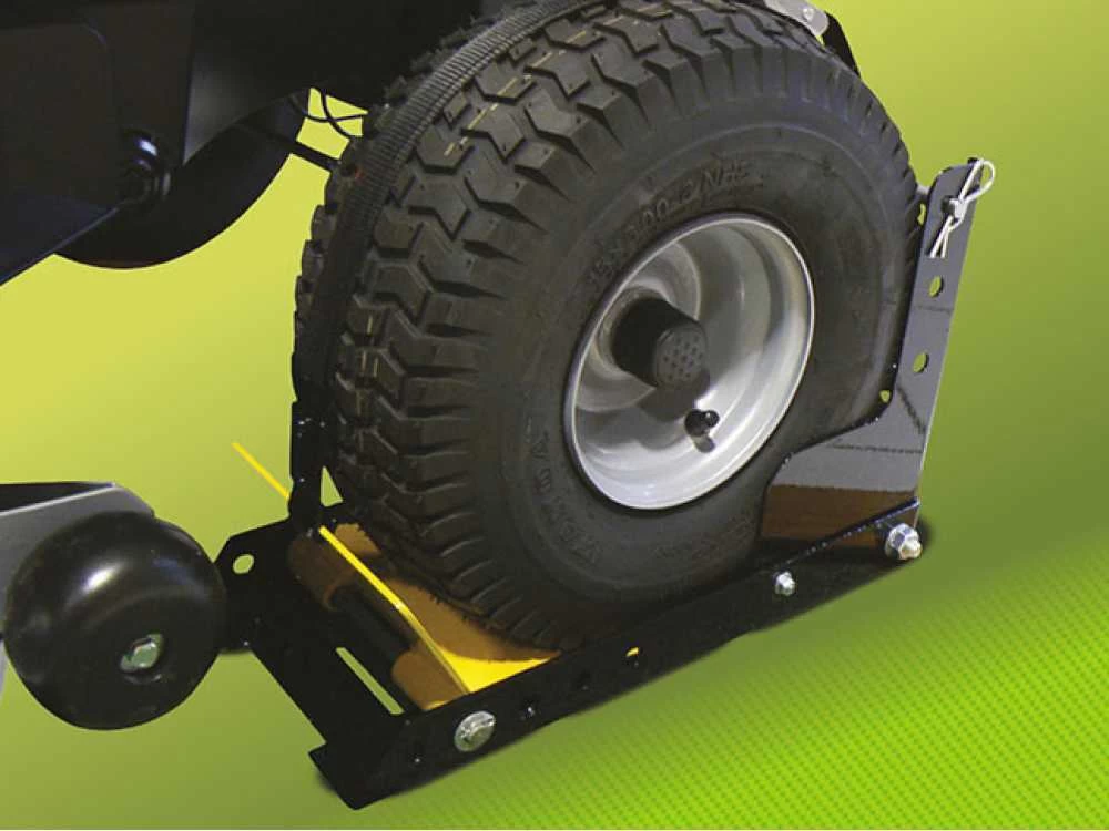 Bloque-roue CLIP BLOCK permet de transporter en toute sécurité et tranquillité n’importe quelle typologie de tondeuses autoportées de jardinage.