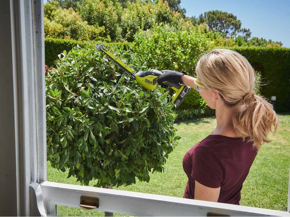 La cisaille électrique RYOBI OGS1822 permet d’effectuer des coupes de 120 mm (pelouse) et 200 mm (haies).