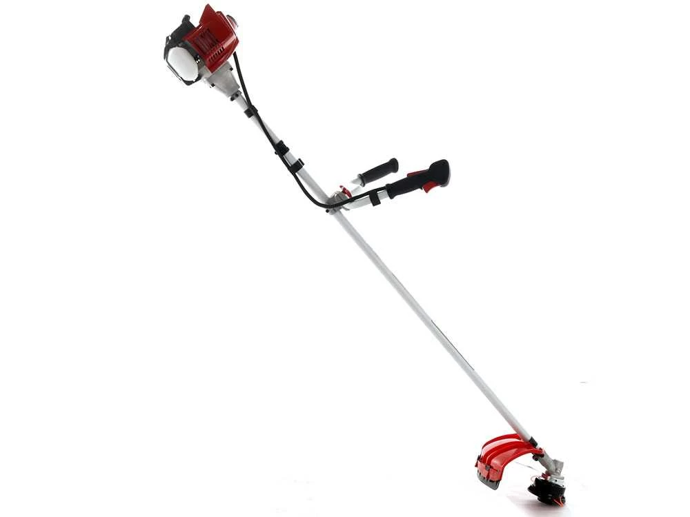 Le guidon asymétrique, avec permet au bras gauche une position plus large, alors que le bras droit, qui pourra gérer les commandes sur le guidon, est très serré et plus proche de la perche. Cet ajustement permet à l’opérateur d’avoir une position correcte des bras, non désaxée par rapport à la débroussailleuse, travaillant ainsi dans le confort plus total même sur différentes sessions de travail.