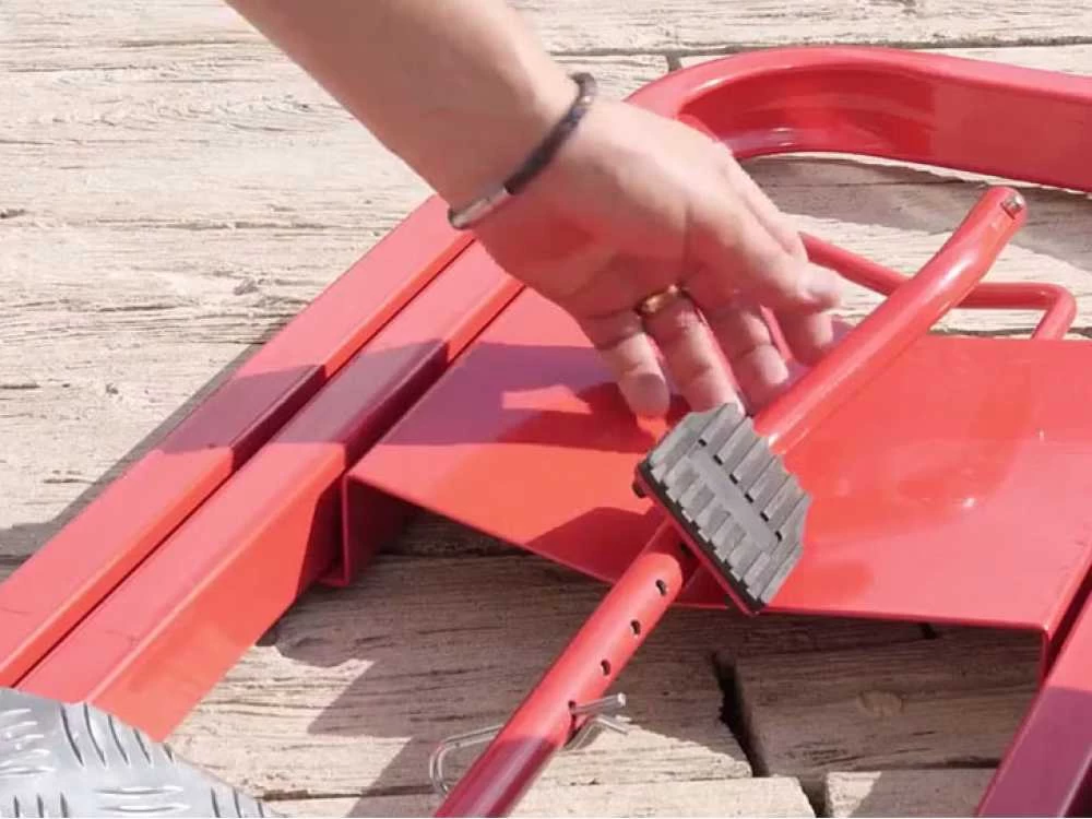 Facile à utiliser et sans effort. Grâce à la double pompe à vérin hydraulique le relevage est très rapide et simplifié. Les rampes dont il est doté permettent un accès plus facile de la tondeuse à l’élévateur.