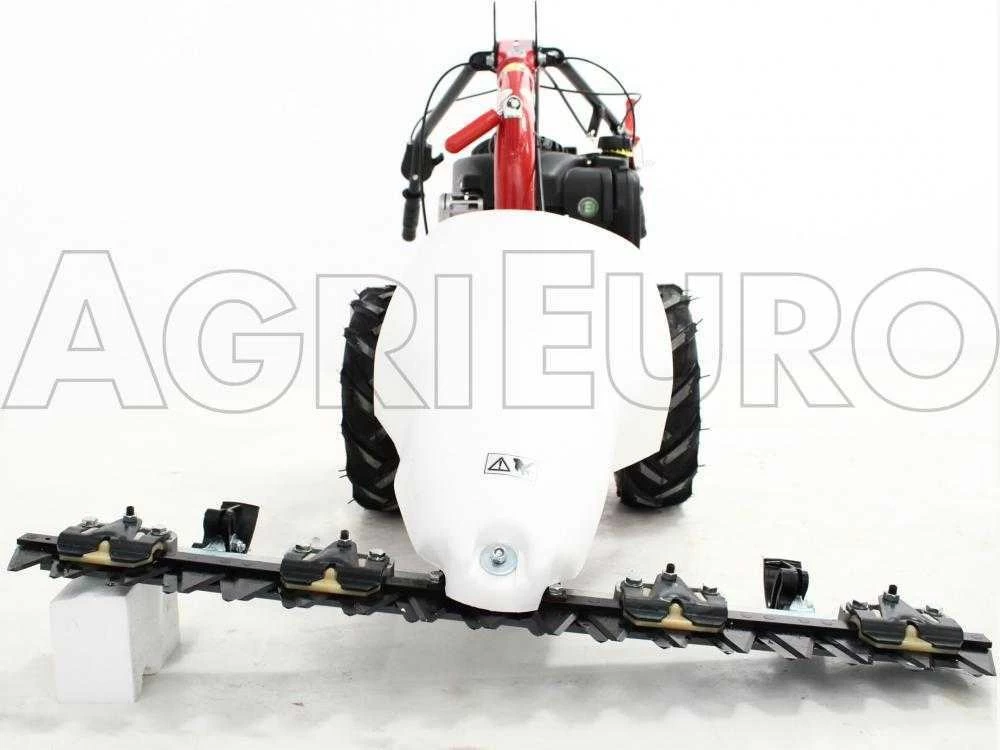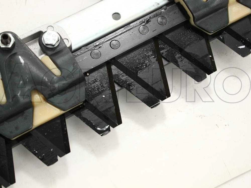 La barre de coupe est composée d’une lame inférieure et une autre supérieure qui effectuent un mouvement simultané à ciseaux. Ceci donne une caractéristique supplémentaire à la barre de coupe de cette motofaucheuse thermique Eurosystems par rapport aux faucheuses traditionnelles présentes sur le marché, qui fonctionnent encore avec un mouvement monolame (mouvement uniquement produit par la lame supérieure tandis que la lame inférieure reste fixe et agit comme une simple contrelame).