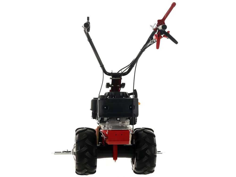 La Minieffe est une faucheuse équipée de moteur thermique à essence tractée équipée de roues pneumatiques anti-crevaison,13×6,00-6 à profil agraire et munies de jantes commandées par une transmission à vis sans fin par bain d’huile avec 1 vitesse avant + 1 vitesse arrière. La barre de coupe 87 cm (comprise dans le prix), est de type mulching avec un mouvement standard monolame.