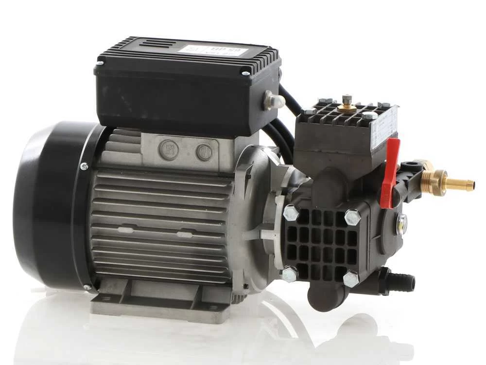 Cette pompe de pulvérisation à deux membranes, avec corps en aluminium anodisé, Dal Degan DL218 est bridée directement au moteur électrique de 1 CV.