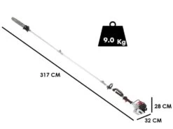 Grâce à sa perche de rallonge, il est possible d’atteindre jusqu’à 3 mètres de hauteur, car la hauteur totale de l’outil atteint les 3,2 mètres.