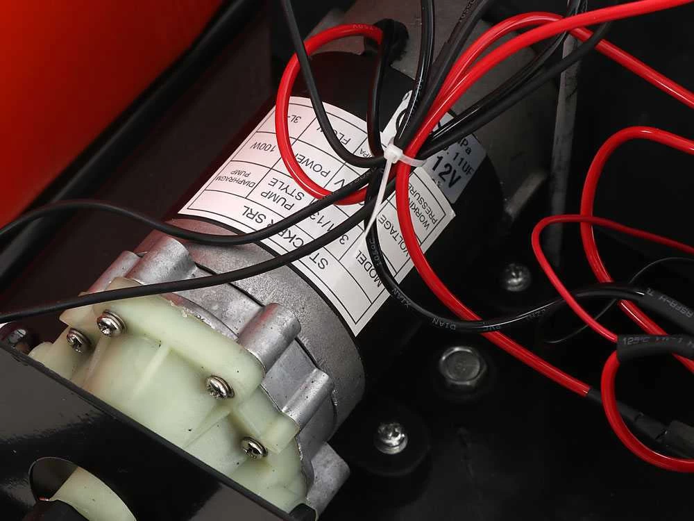 Equipée également d’une cuve de 1.8L avec robinet rince-mains. Dotée de voltmètre et indicateur de niveau de remplissage.
