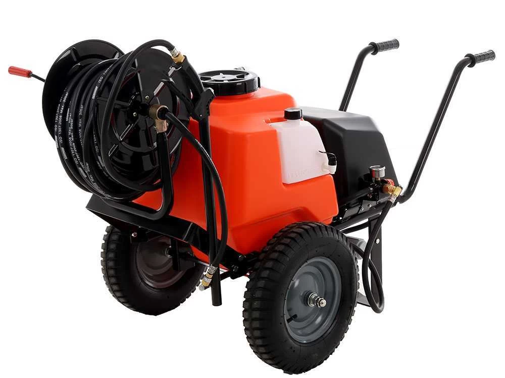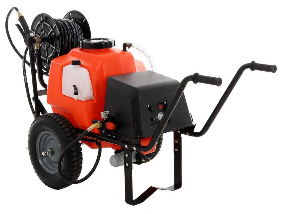 Elle Garantit une autonomie d’environ 4 heures (par rapport à la pression d’usage); la pression est réglable de 1 à 10 bars, dotée d’un flexible de 30 m avec enrouleur professionnel et lance en aluminium 65 cm avec buse réglable.