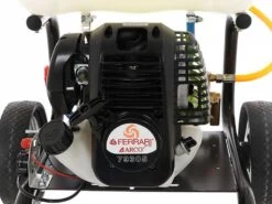 Pulvérisateur thermique à chariot GeoTech SP 520 2S sur chariot avec moteur à mélange 2 temps et réservoir de 50 litres.