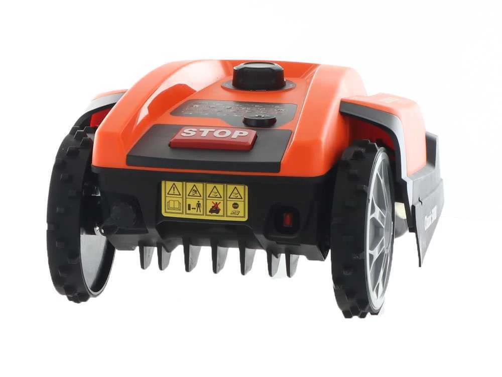 Le robot est équipé de deux roues à traction élevée qui lui permettent une adhérence améliorée même sur des pentes difficiles. Alors que les deux roues pivotantes à l’avant stabilisent la tondeuse robot.