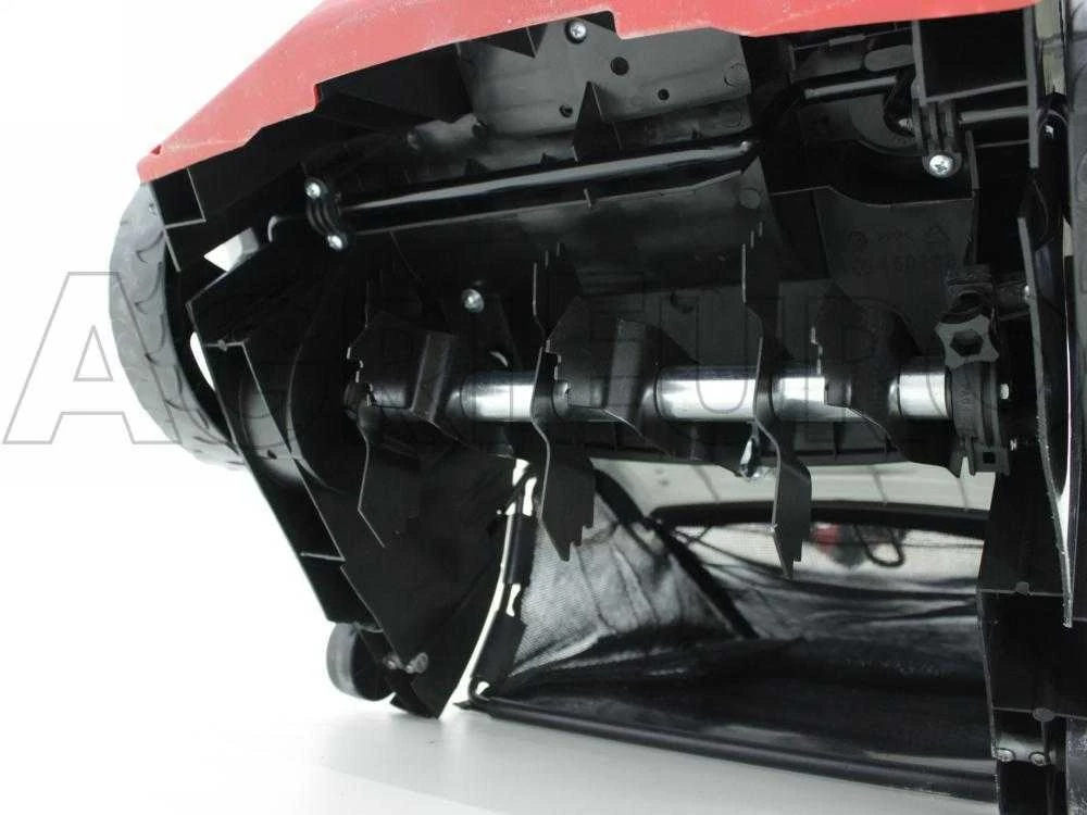 Configuration de travail sans panier inséré: avec le déflecteur postérieur prèvu à cet effet il dépose à terre la vieille mousse et les résidus de scarifiage.