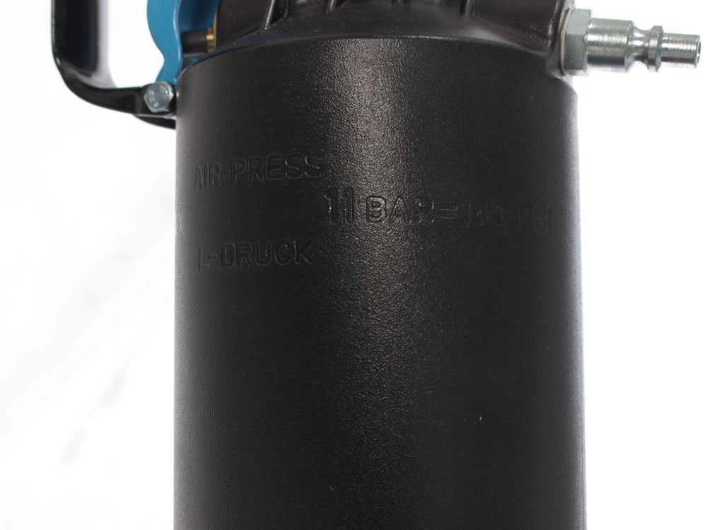 Raccord pour le flexible du compresseur. La commande d’alimentation de l’air comprimé est dotée d’un dispositif de sécurité.