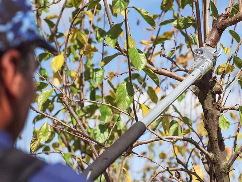 Léger et maniable, le sécateur électrique sur perche Easy 80 fait partie de la nouvelle ligne Line 44 de Campagnola.