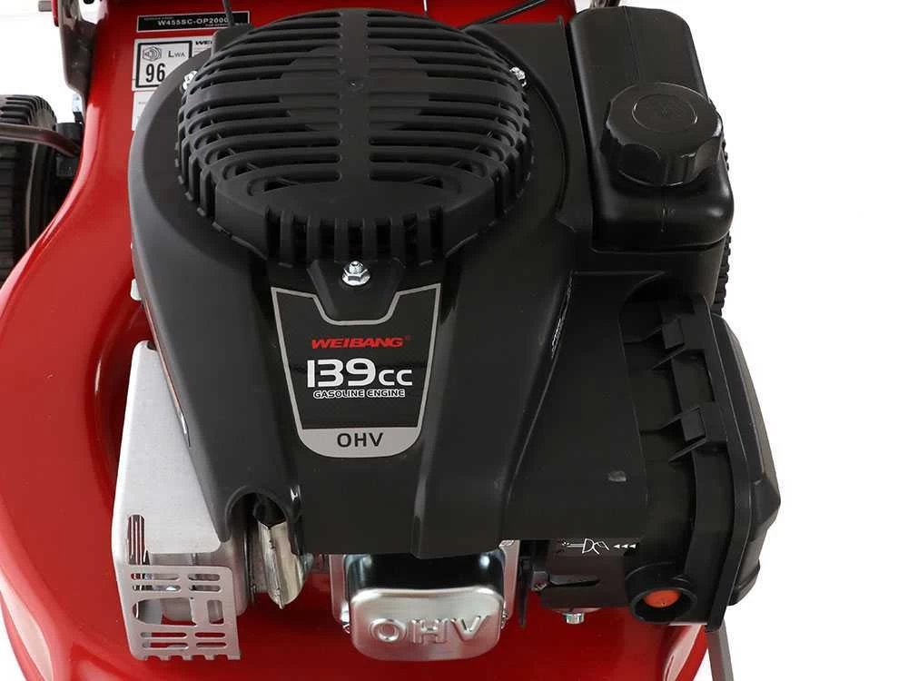 Weibang WB455SCOP est puissante, fiable et très polyvalente, elle monte un puissant moteur Loncin OHV de 4.5HP d’une puissance nominale de 139cm3.