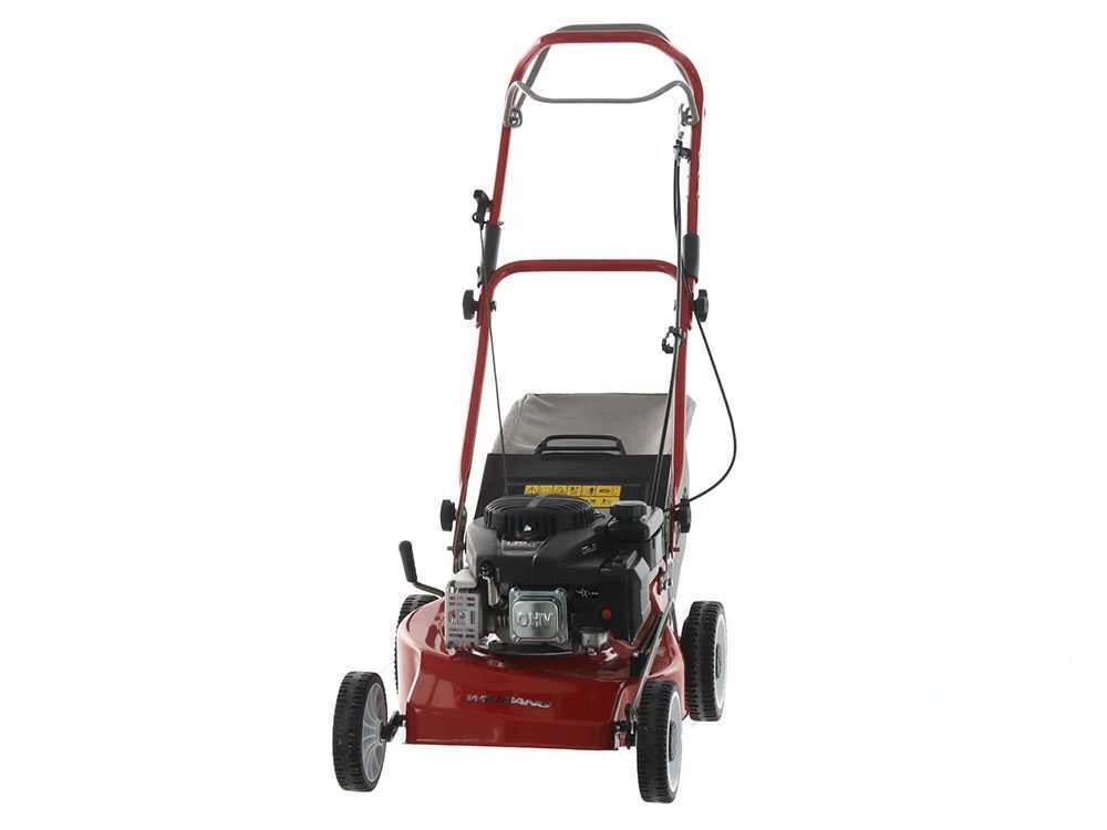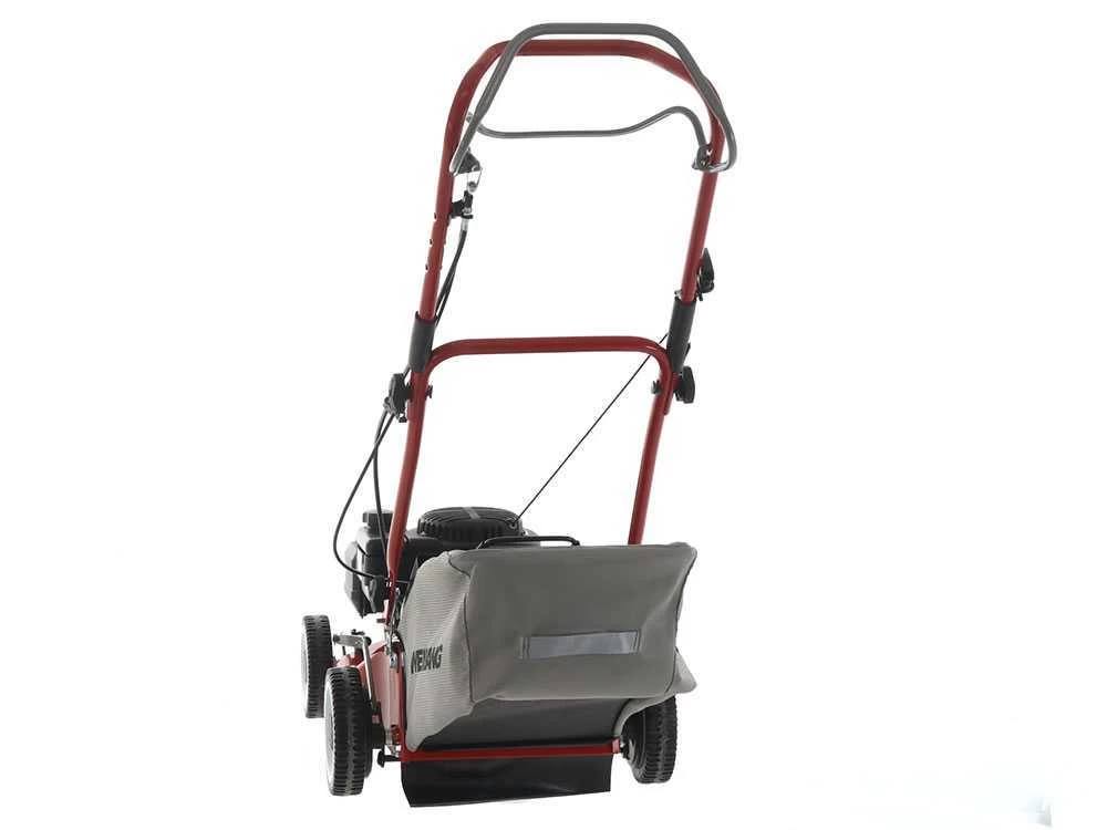 Bac de ramassage de 50L, avec les roues antérieures de 180mm et arrières de 200mm revêtu de caoutchouc, qui assurent un contrôle optimal de la tondeuse même sur les terrains plus difficiles.