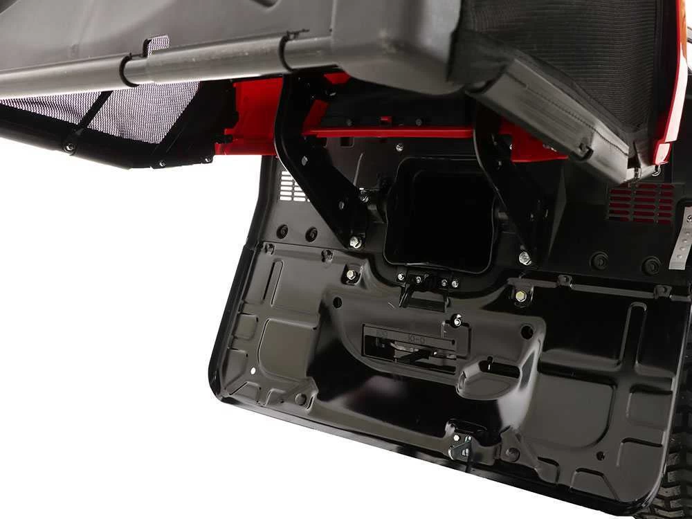 Le plateau de coupe de la tondeuse autoportée est basculant: il s’adapte facilement aux aspérités du terrain (du moment qu’elles ne soient pas excessives). De plus, ce modèle est pourvu également d’une large protection qui recouvre entièrement le plateau.
