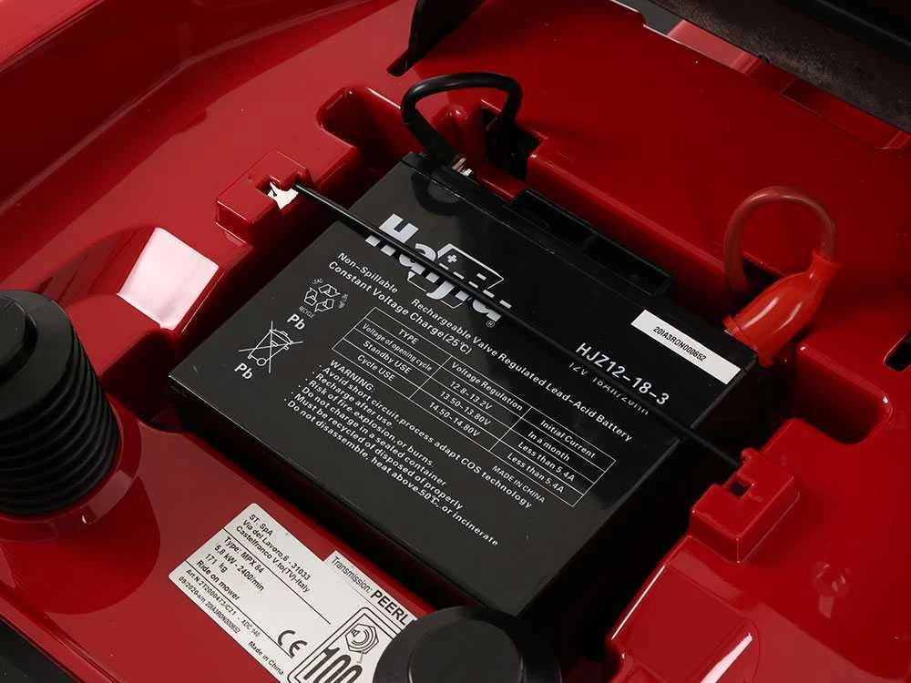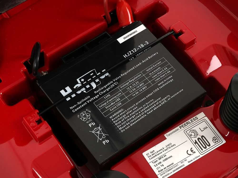 L’ engagement des lames est électromagnétique et il se dirige avec le bouton rouge à droite du volant. Ce système évite l’embrayage manuel avec la traditionnelle poignée placée sur de nombreux tracteurs tondeuses, et il fonctionne donc grâce à un embrayage électromagnétique qui facilite et accélère un rapide engagement des lames.