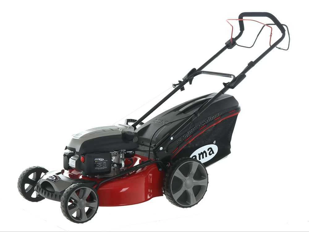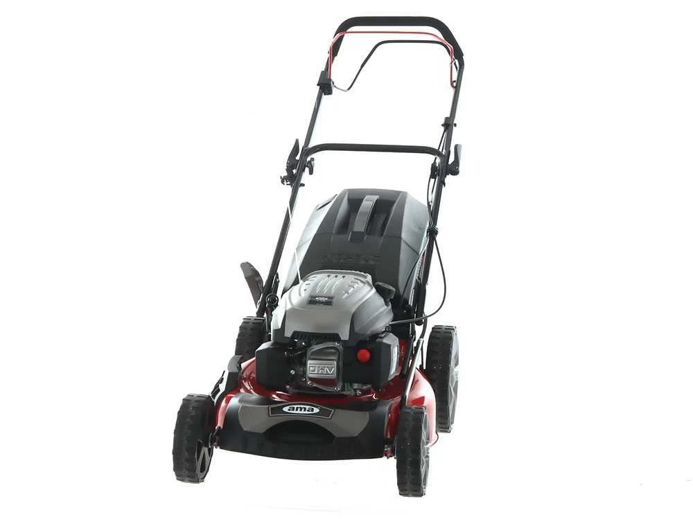 Tondeuse autotractée AMA TRX 511 équipée d’un moteur thermique et d’un dispositif de coupe 4 en 1 capable d’adapter les systèmes suivants: