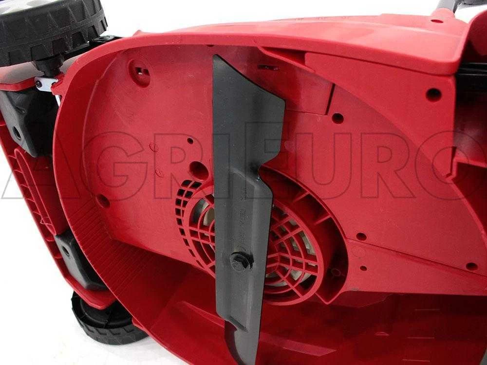 La machine est une traditionnelle 3 en 1, système mulching, à éjection arrière et avec le collecteur de ramassage de 47 litres.