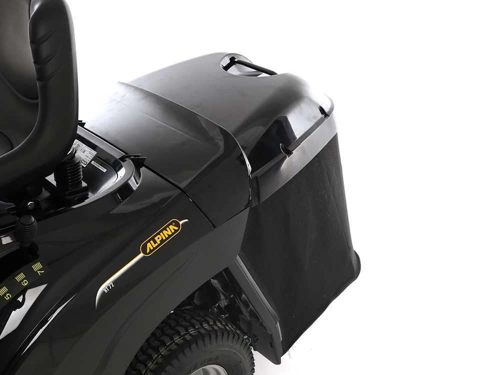Avec le bac monté, la tondeuse autoportée Alpina AT2 72A pourra récolter l’herbe coupée directement dans le bac. Ceci permet de laisser une pelouse entretenue et de vider le bac à l’endroit désiré. Le vidage du bac s’effectue en démontant manuellement le bac qui est une opération très facile. Le bac est démontable en un instant: il suffit simplement de le soulever vers le haut pour ensuite le retirer de l’emplacement de fixation qui lui est réservé.