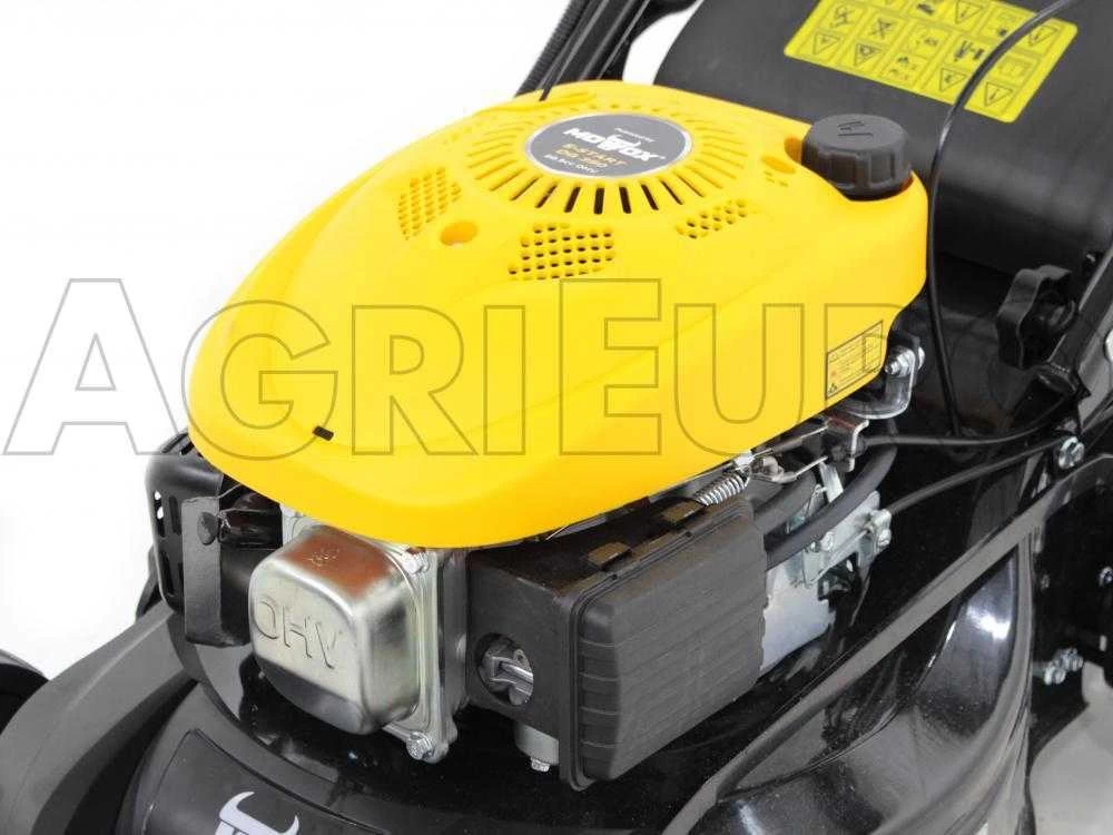 Elle est équipée d’un nouveau moteur produit par la même société Mowox de 98.5 cm3 de cylindrée monté sur le large châssis qui est réalisé en acier. la largeur de coupe est de 43 cm.