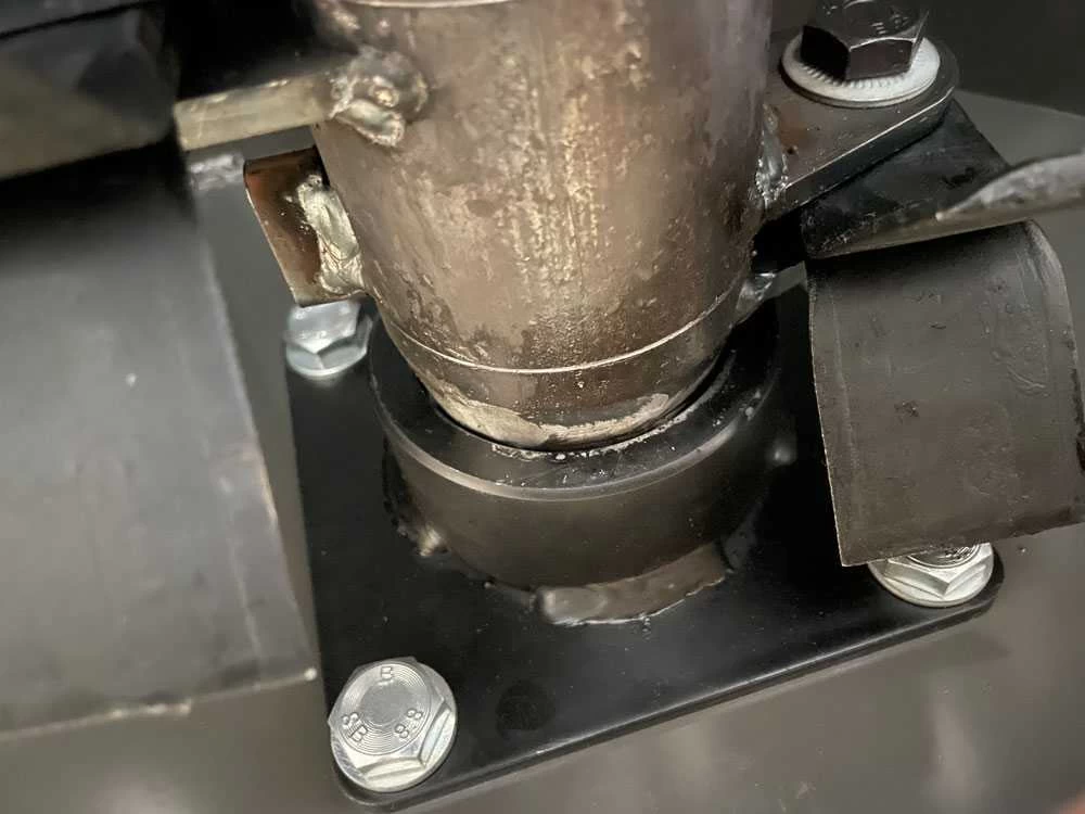 Sur les deux côtés de la plaque de coupe se trouvent deux ailettes de taille considérable, caractérisées par une longue bande de soudure, positionnées pour augmenter la structure et la résistance aux chocs et aux secousses de l’ensemble du système de coupe et du rotor.