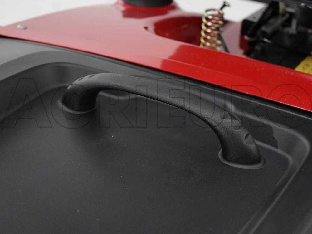 Avec le bac collecteur monté, l’herbe tondue sera directement recueillie dans le bac. Ceci permet de laisser votre espace vert nettoyé et de pouvoir choisir à quel endroit vous souhaitez décharger le collecteur. Le vidage du bac est extrêmement simple grâce à la poignée présente sur la partie supérieure du bac, il peut être vidé sans avoir besoin de descendre du siège conducteur de la tondeuse autoportée.